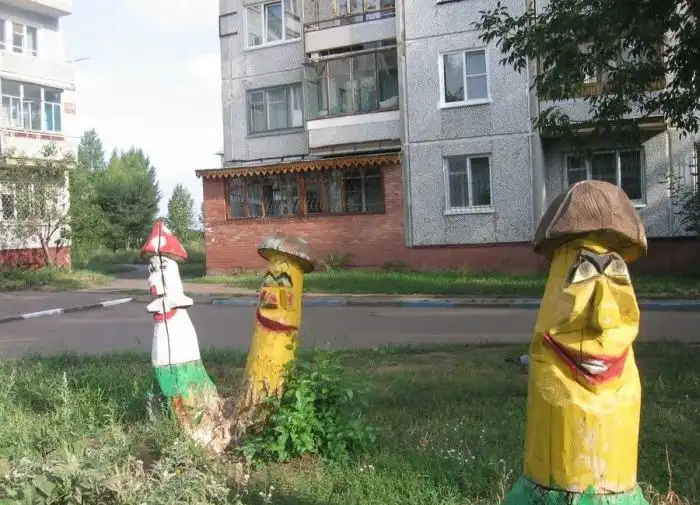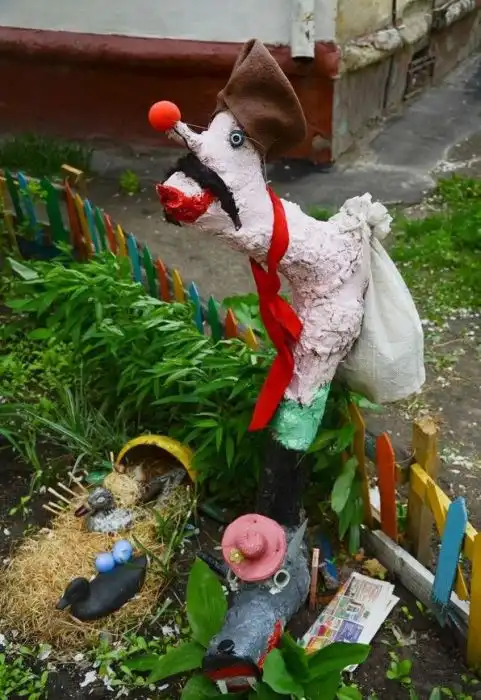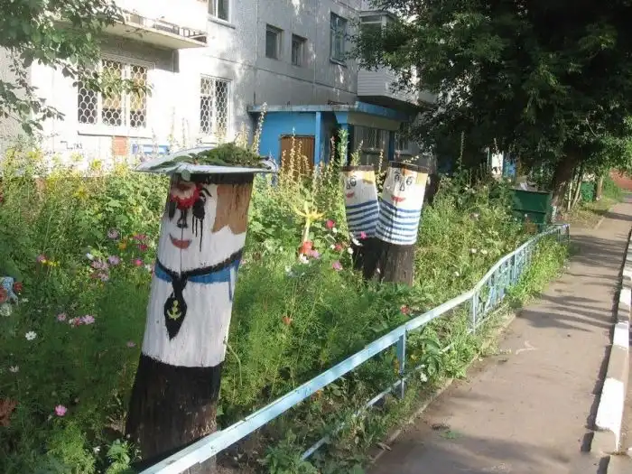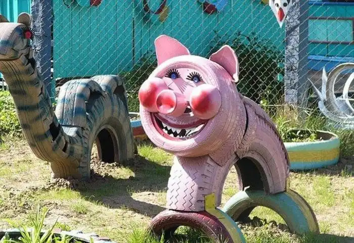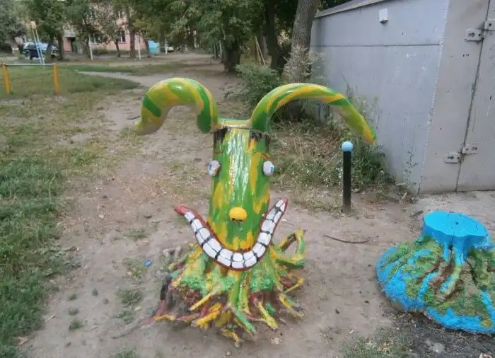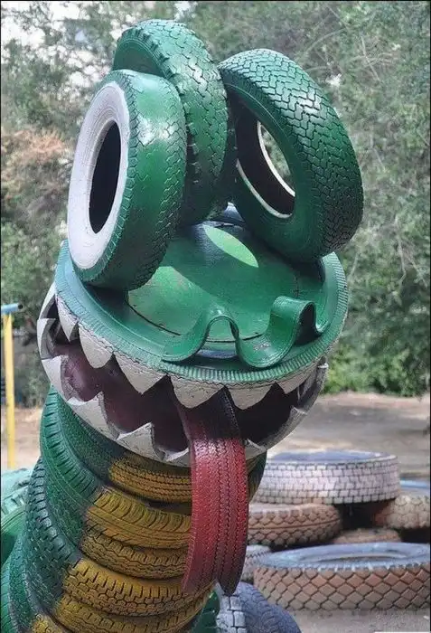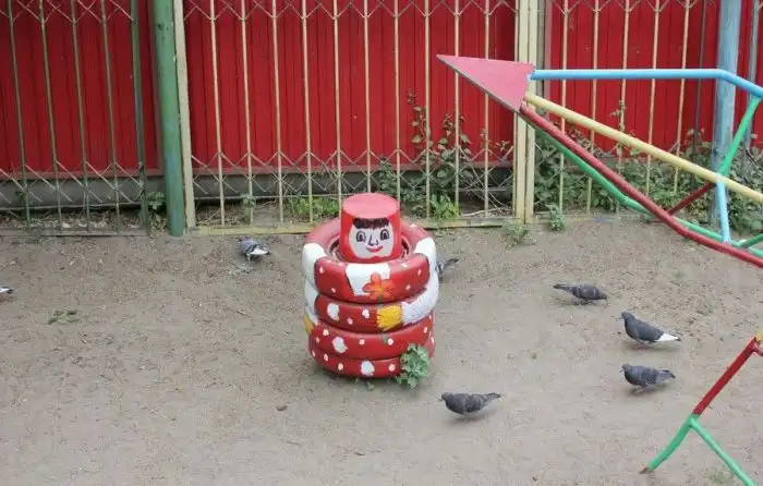 Старые покрышки, тазики и прочий хлам - вот настоящие материалы для дворового искусства.