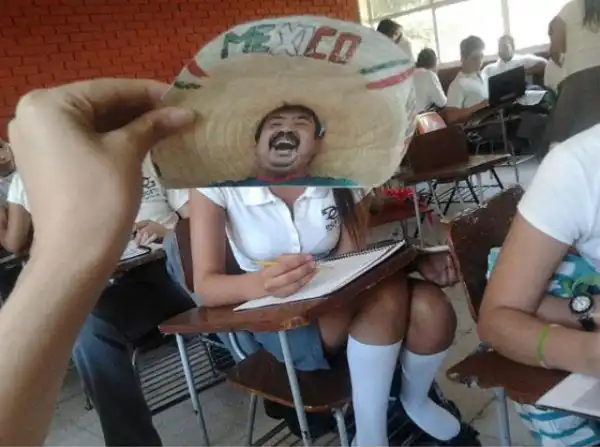 Нет ничего тоскливее, чем сидеть на парах вместо того, чтобы отдыхать в компании друзей, особенно в пятницу. Есть один простой способ, как поднять себе настроение и раскрасить унылое окружение с помощью простого клочка бумаги. Морда веселого мексиканца в сомбреро подойдет любому из ваших соседей по парте.