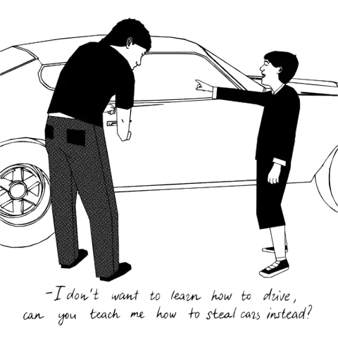 («Я не хочу учиться водить машину, я хочу, чтобы ты научил меня красть машины».)