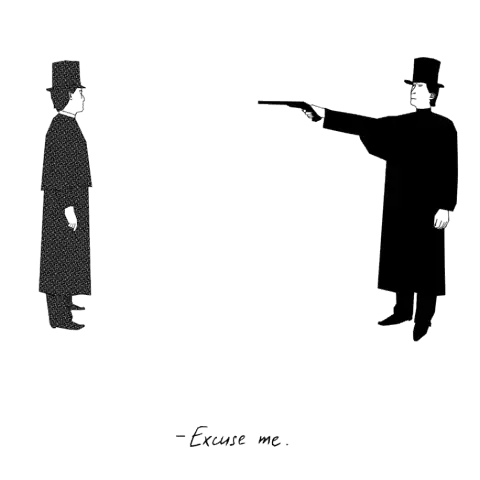 (Онегин, собираясь убить Ленского: «Прошу прощения».)