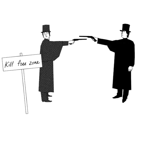 (Надпись на табличке: «В этом месте убийства запрещены».)