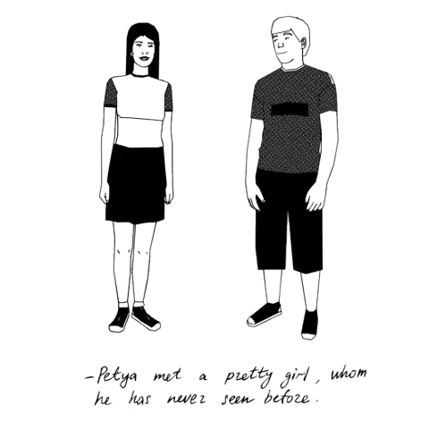 («Петя встретил симпатичную девушку, которую никогда прежде не видел». Здесь используется артикль a, потому что это какая-то девушка, про которую ничего не известно.)