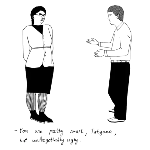 («Ты довольно умная, но незабываемо уродливая, Татьяна».)