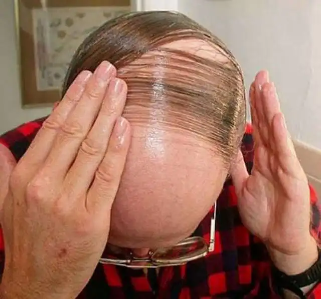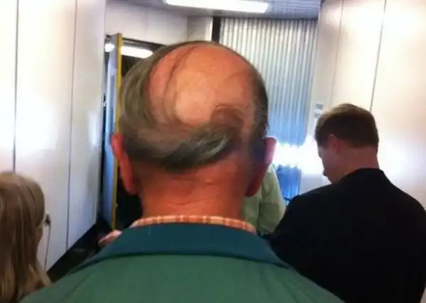 Мужики, у который начинаются проблемы с волосяным покровом, зачастую считаю, что если правильно зачесать волосы на лысину, но никто ее не заметит. В итоге получаются вот такие шедевры парикмахерского мастерства. Я лично считаю, что лучше побриться наголо, чем мастерить у себя на голове вот такой курятник.
