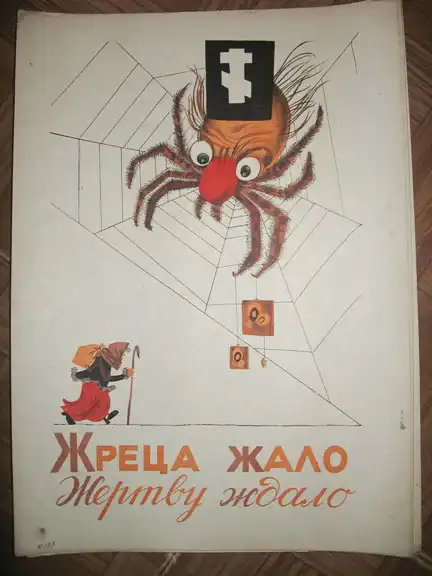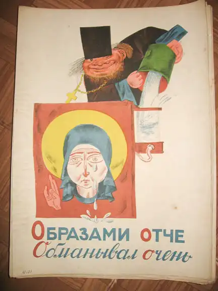 Во времена советской власти религия была не то чтобы под запретом, но уж точно не пользовалась популярностью. Некоторые церкви и храмы были закрыты и переоборудованы под другие нужды, более важные для народа. А некоторые церкви продолжали функционировать: там проводили службы, крестили, исповедовали, освещали предметы и занимались прочими ритуалами. Некоторые люди ходили в церковь, а некоторые, напротив, были настроены категорически против нее. Писатели и художники советских времен выражали в своем творчестве протест против религии, церкви и ее служителей. Опять же, кто-то из них делал это по своему желанию, а кому-то явно давали такое партзадание.