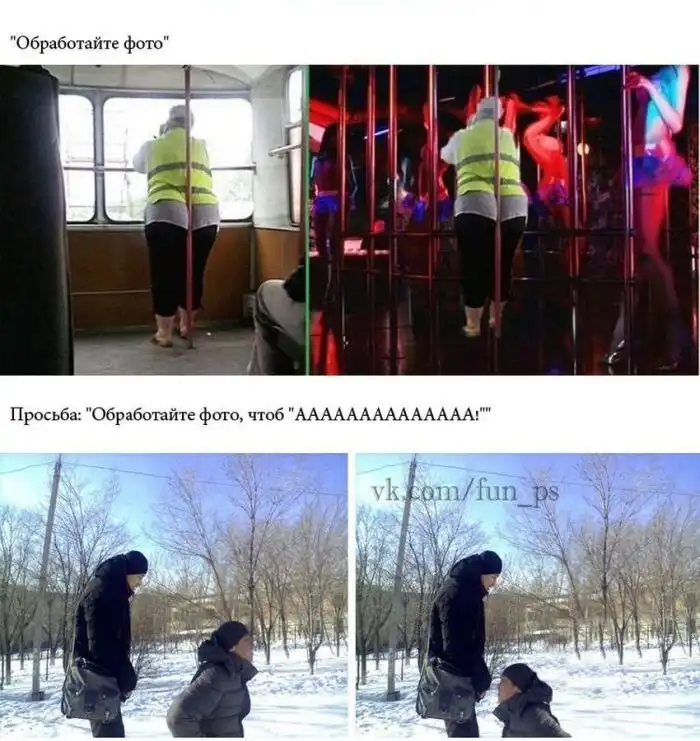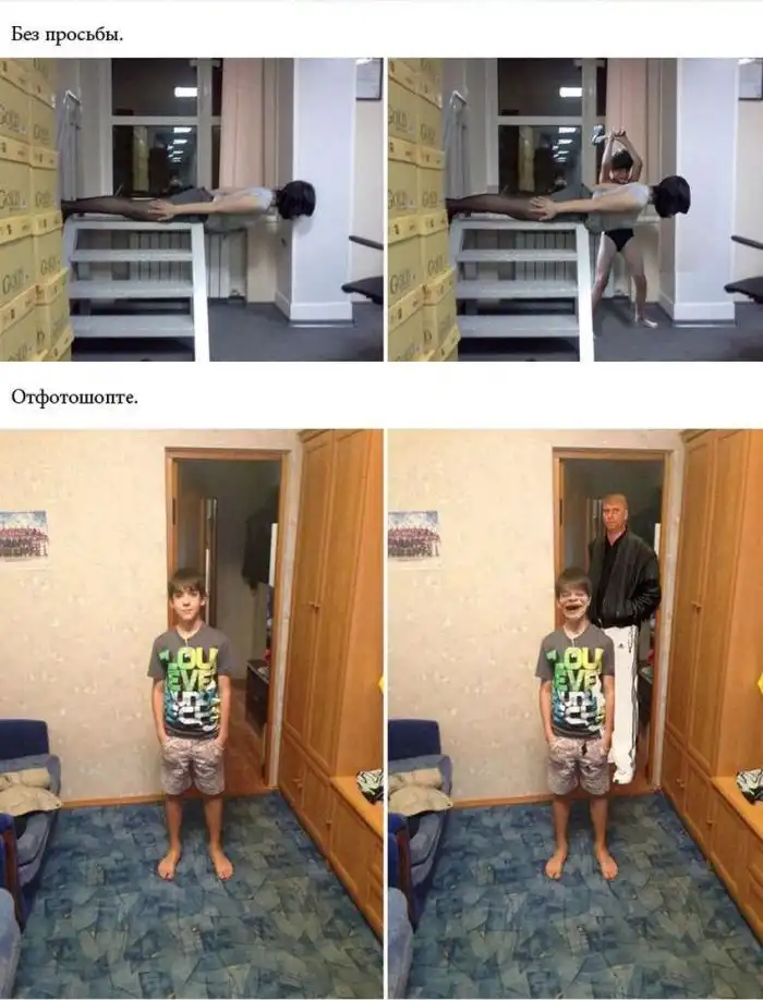 Классная коллекция очень смешных работ фотошоперов из социальных сетей, которые с легкостью соглашаются отредактировать фотографии друзей в онлайне, а потом радуют нас своими "шедеврами". Я не устану вам повторять, что не стоит просить знакомых из соц. сетей отфотошопить ваши снимки, а иначе вы рискуете увидеть свои фотографии в такой подборке, как и эта ;)