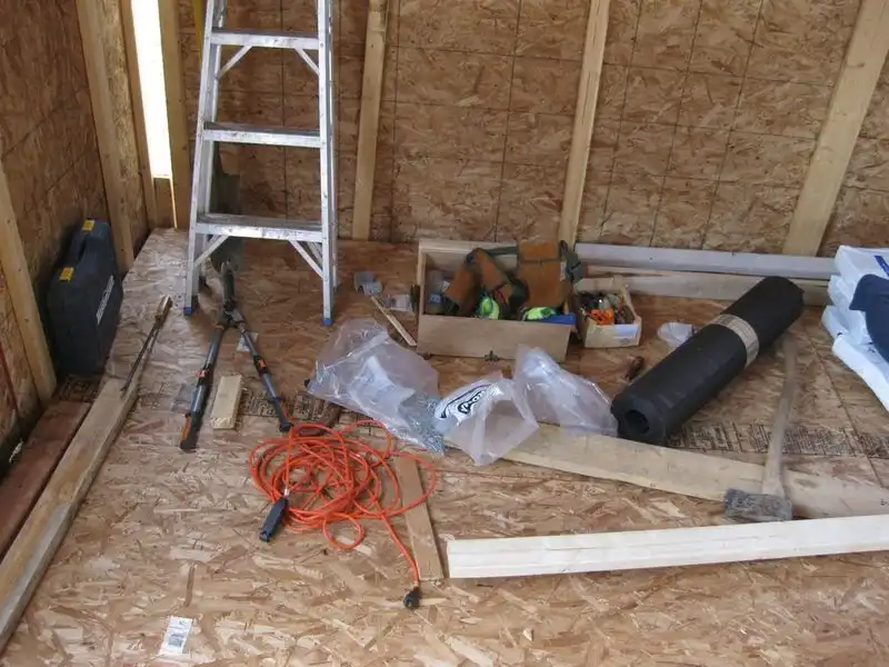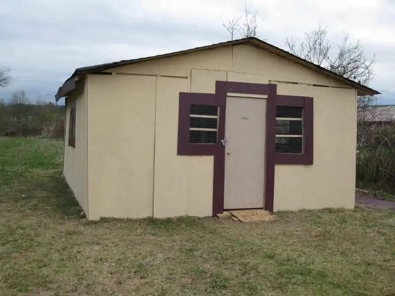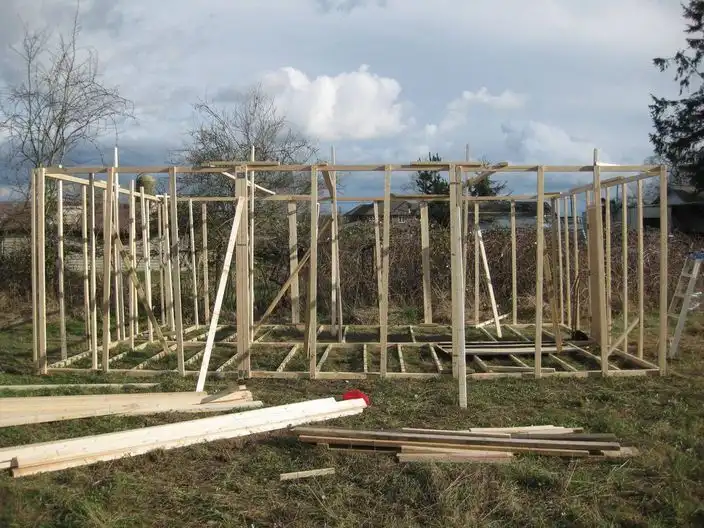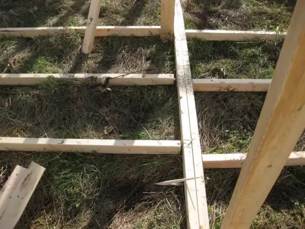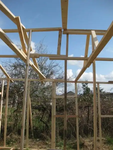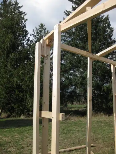 "Ровнее" места выбрать было невозможно. Одни бугры... О том, чтобы выравнить вопрос вообще не стоял. Травку притоптал и хорошо. Подпорки, будем надеяться, что домик выстоит до первого ливня или сильного ветра.