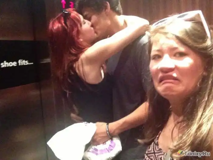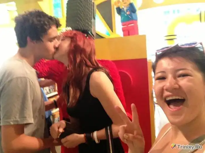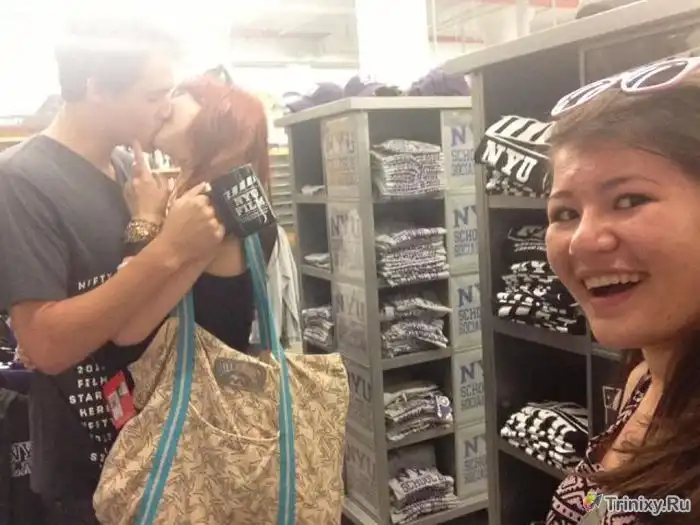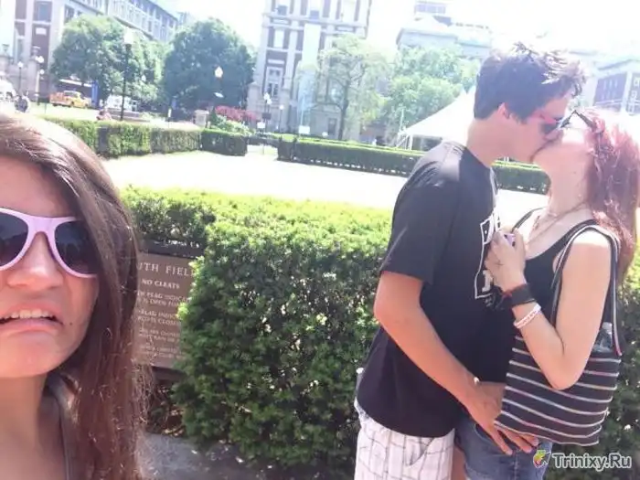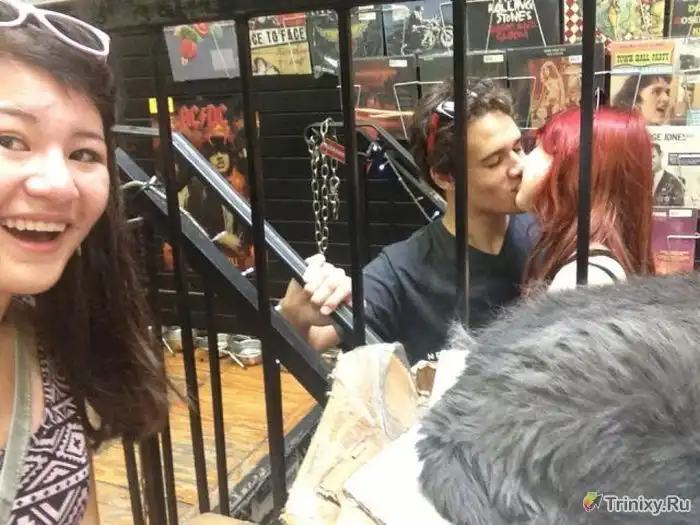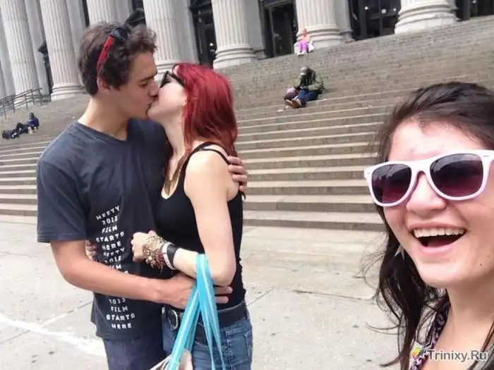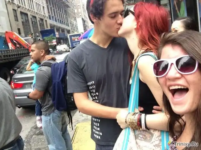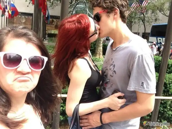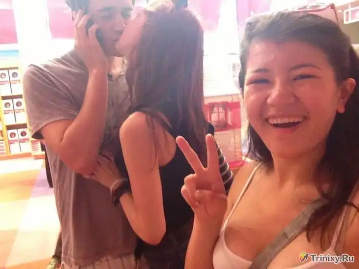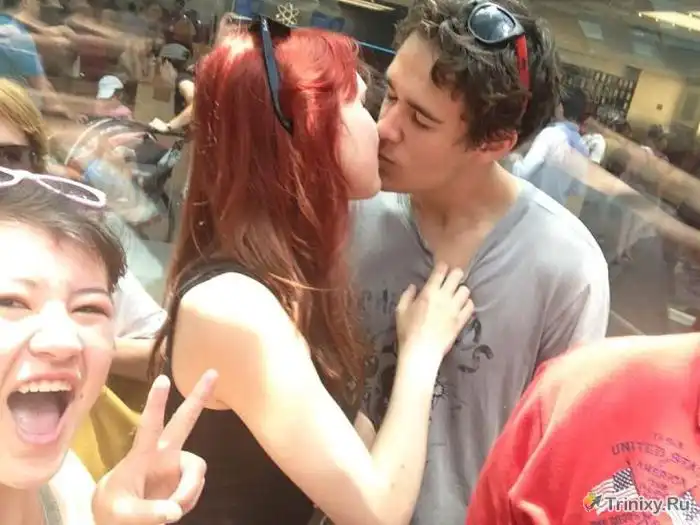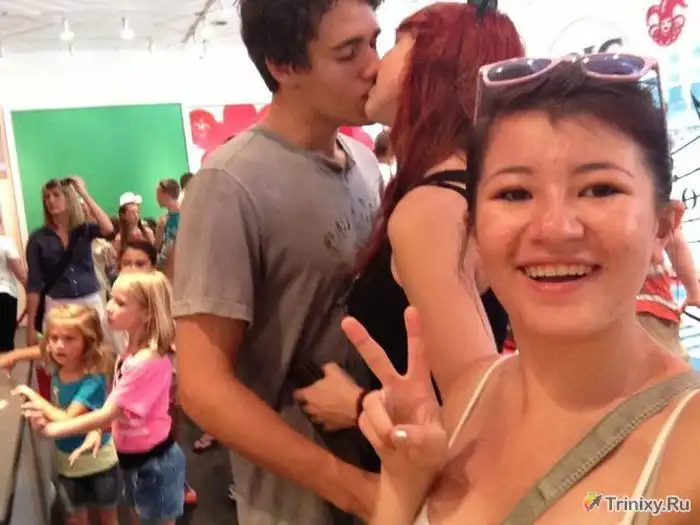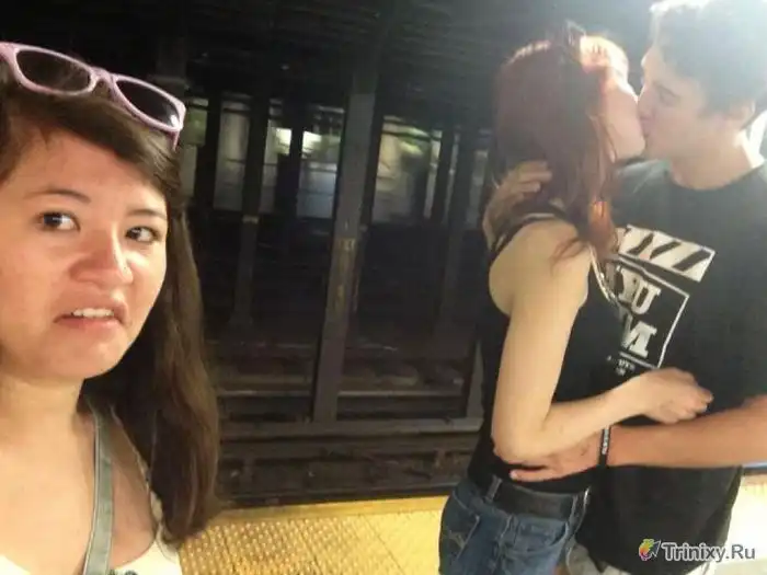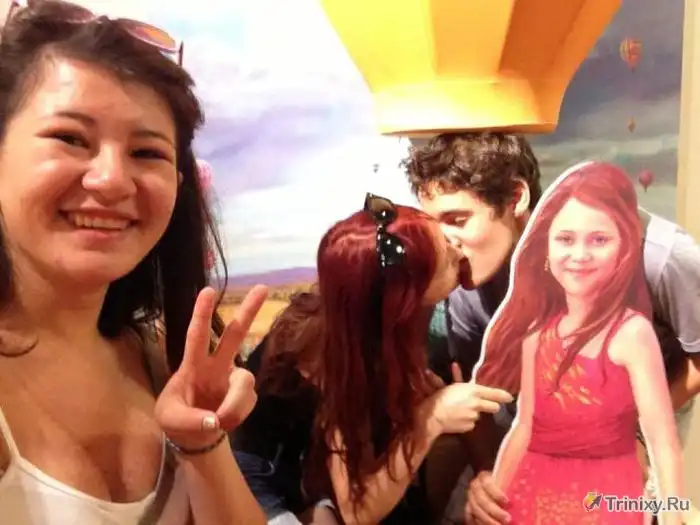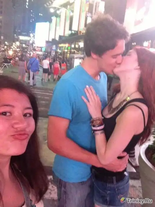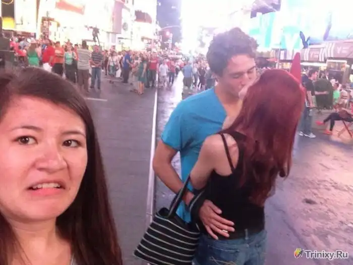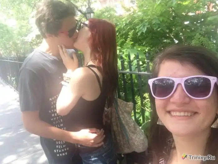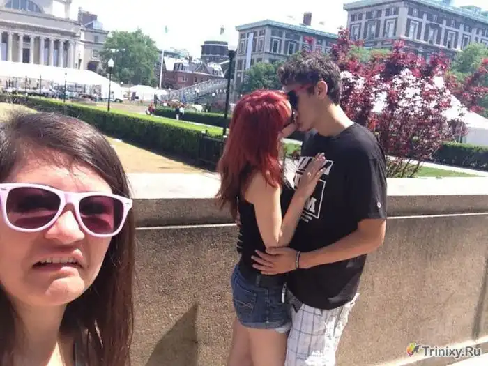 Эту назойливую девушку можно с уверенностью назвать фотобомбершей недели, ведь она просто не дала ни единого шанса всем своим друзьям сделать хотя бы парочку нормальных снимков без ее присутствия ;)