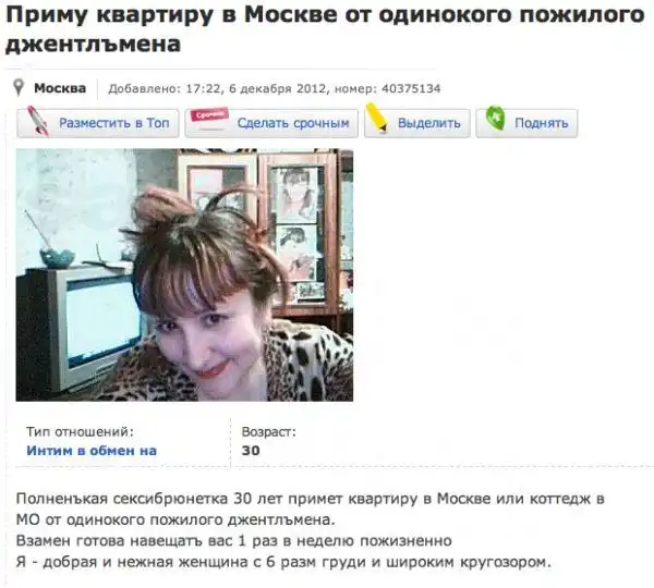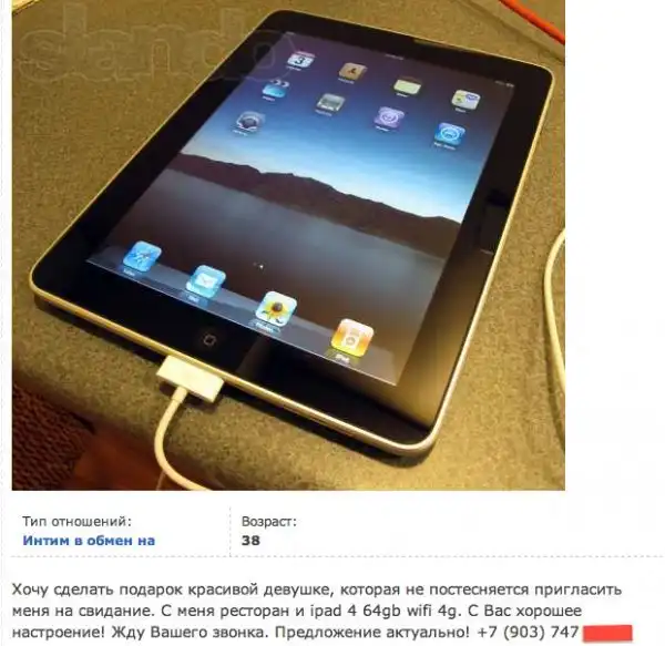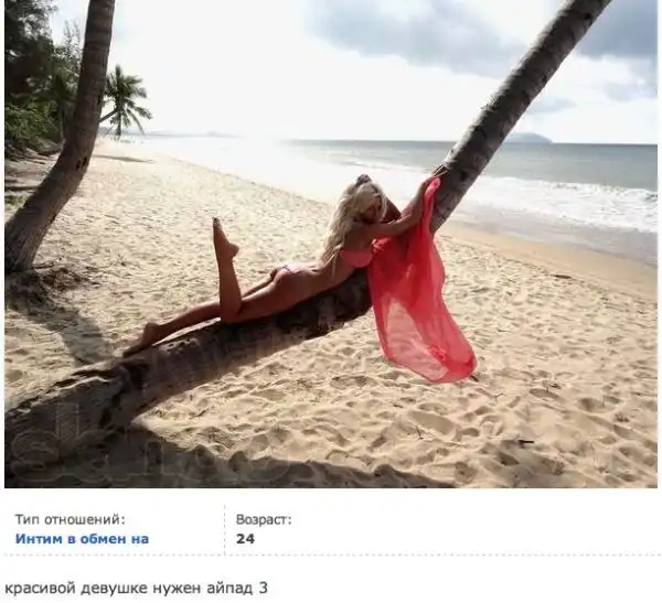 Доски объявлений в последнее время все больше пестрят предложениями, в которых интим выступает в качестве валюты. Вот хочет какая-нибудь девушка iPad - выставляет свое тело в обмен. Есть и более щедрые предложения. Вон мужик машину отдает - только поужинать с ним надо, якобы.