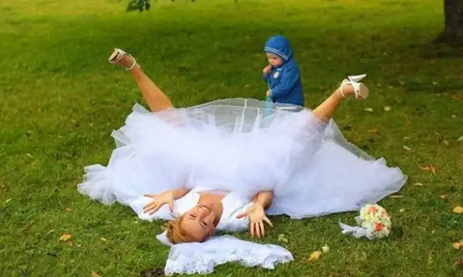 Но ничто и никогда не сможет сравниться со следующим, самым радикальным и творческим кадром всех времён и народов, где в попытке произвести по - настоящему значимое произведение фотографического искусства фотограф окончательно ставит точку во всех спорах о том, каким должно быть современное свадебное фото.