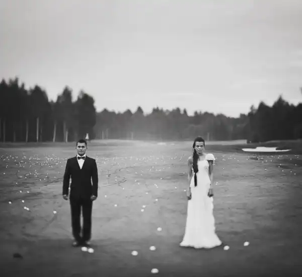 Продолжая искать новые подходы к свадебному фото, модный фотограф предлагает следующий неоспоримый тезис - молодожёнам необязательно быть в фокусе. Зря что ли промышленность наладила выпуск дешёвых объективов с тилт-шифтом? Чем не повод сделать половину кадра замыленной? Но настоящий профессионал не ограничивается размытием пейзажа, уж нарушать правила, так нарушать, и он размывает в хлам и молодожёнов. К чему все эти изыски с филигранным попаданием в плоскость фокуса ресничек невесты? К чему все эти попытки получить снимок сфокусированных молодожёнов на размытом заднике? Размыть нужно всё, к херам собачьим! Кто вообще сказал, что молодожёны на снимке должны быть в фокусе?