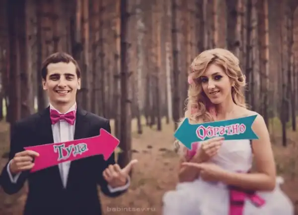 Руководством к какому именно процессу служат эти, явно специально изготовленные к свадьбе таблички, я не знаю. В меру своей испорченности я конечно же предложил бы один вариант, но воздержусь, всё же это будут читать начинающие фотографы.
