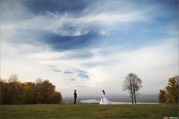 Десятку самых запоминающихся постановок искушённого профессионала венчает бесспорный шедевр на все времена. Приятно констатировать, что этот заслуженный кадр со временем совершенно не утратил своей популярности, а сама идея его исполнения при съёмке свадьбы и сегодня находит самый горячий отклик в сердцах свадебных фотографов. Думается, причина неувядающей популярности этого снимка кроется в бесконечной вариативности его воплощения. Ведь "Стоять" можно и в чистом поле (надеюсь, вы уже безошибочно определили гибрид "Стояния" и "Удаления"):
