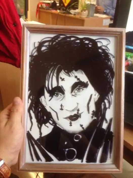 В одном офисе работник принёс свой портрет, который ему подарила одна из его поклонниц. Коллеги сразу не взлюбили этот портрет, потому что Алексей на портрете получился уж более, чем удачно. Каждый рабочий день коллеги пытались придать портрету Алексея новый облик.