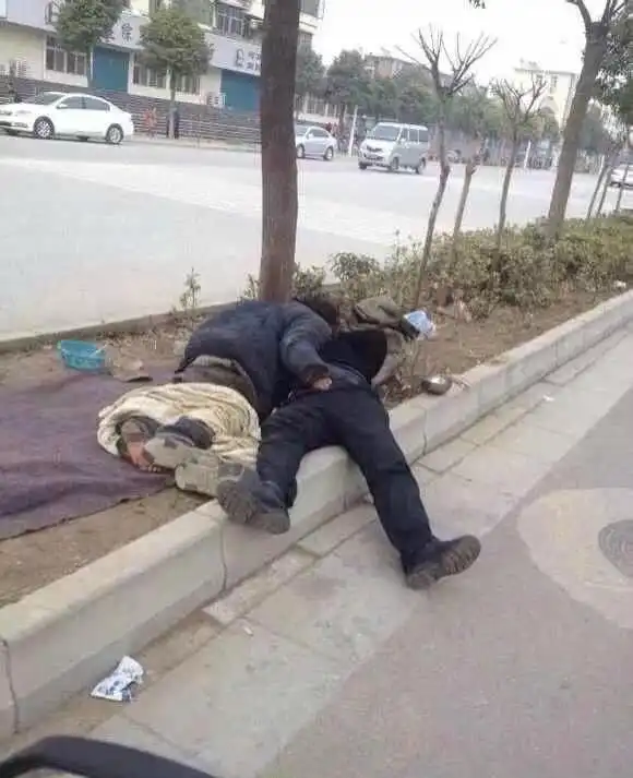 Эти бросающие в дрожь кадры были сделаны в одном из китайских городов среди бела дня на центральной улице. Мужик навалил лишнего и улегся вздремнуть. Его слабостью к алкоголю воспользовался любвеобильный бомж. Бездомный полез к нему в штаны, а чтобы процесс не выглядел совсем уж пошло, он решил наградить спящего товарища поцелуем.