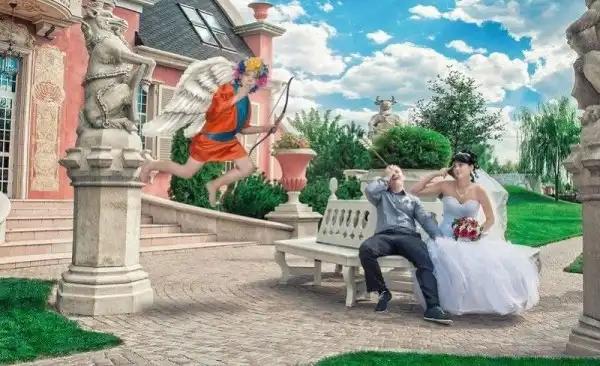 Не хочу задеть чувства свадебных фотографов - среди них есть действительно настоящий профессионалы. Но некоторые из деятелей в стремлении продемонстрировать свое творческое видение заставляют молодоженов заниматься полнейшей ерундой. Таким "творцам" нужно ампутировать не только фотошоп, но и фотоаппарат вместе со вспышкой.