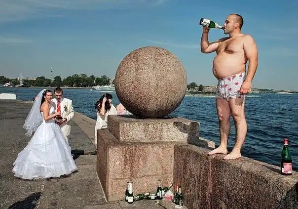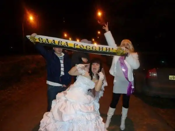 С каждым годом русские свадьбы становятся все более американизированными, что печально. Как же питие водки из потной туфельки невесты? Или катание пьяной тещи на тележке в одних трусах? Я уже молчу о традиционном мордобое. Без этого ходить к кому-то на свадьбу вообще бессмысленно, как по мне.