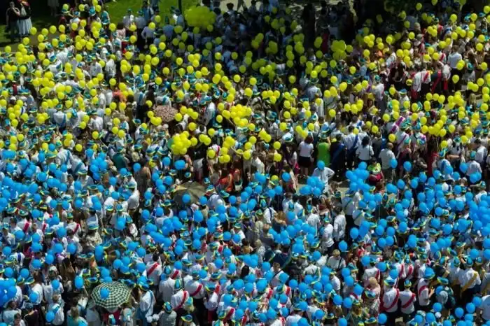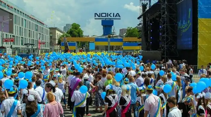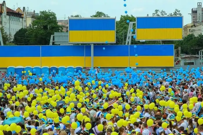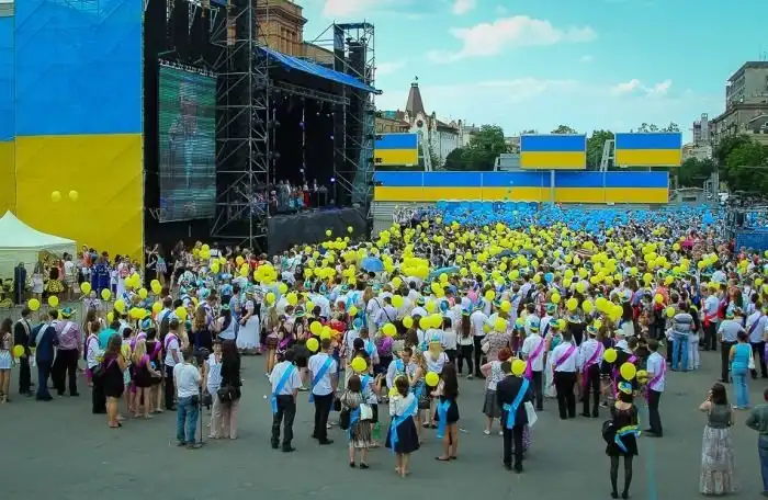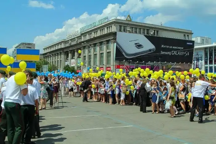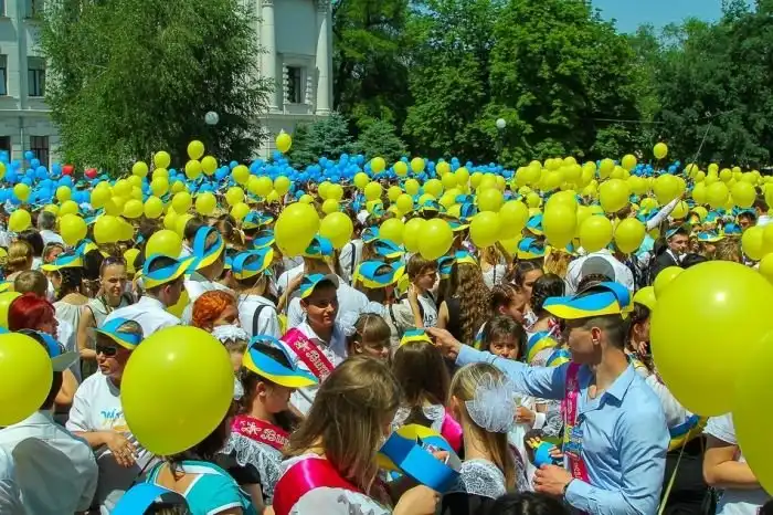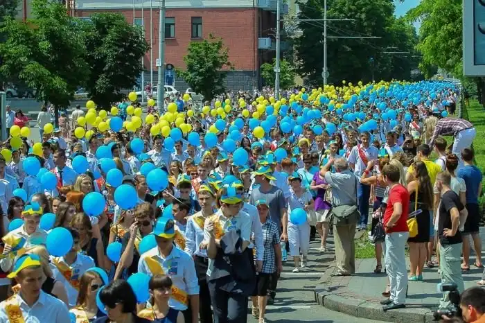 30 мая более 5000 выпускников Днепропетровска спустились по проспекту Карла Маркса к центральной площади города, чтобы запустить в небо символичные воздушные шары.