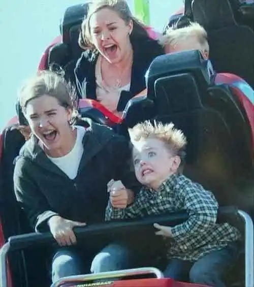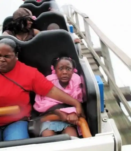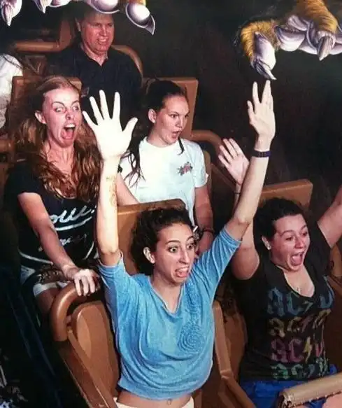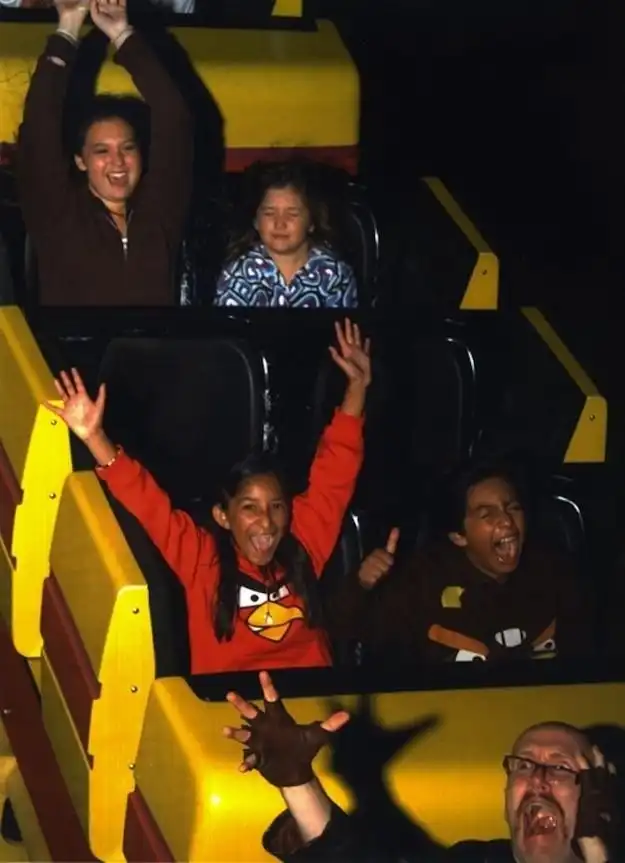 Смешные, забавные, удивительно спокойные, очень сильно напуганные и всё это видно по лицам людей, которые катаются на аттракционах.