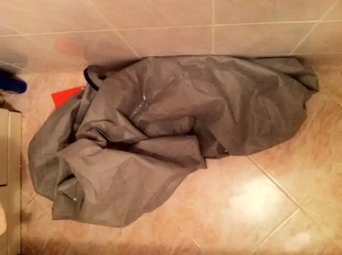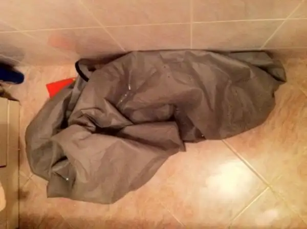 Нужно было что–то срочно предпринять. Главное — замести следы. Для начала нужно было спустить воду. Я дотянулся до пробки и открыл слив. Вода стала уходить, уровень пенопласта в ванне стал снижаться. Было принято решение "действовать в лоб". — зачерпывать дуршлаком шарики и промывать их под душем. Упихивать в мешок пенопласт с ариэлем не хотелось. Объем ванны был около 100 дуршлаков. Я зашил дырку и наполнил мешок пенопластом часа за 3. Подвесил его сушиться над ванной.