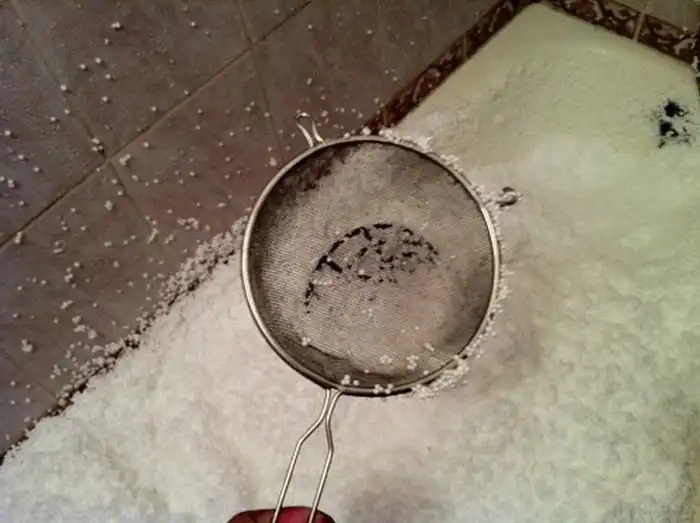 Так, пенопласт с пола собран, руки очищены, нужно было придумать, как постирать пенопласт. На полу валялся внутренний тонкий мешок. Первоначальной идеей было стирать пенопласт в этом мешке и перекладывать порциями во внешнюю оболочку, но руками черпать пенопласт из ванны было неудобно и я пошел на кухню за какой–нибудь емкостью. На глаза попался дуршлаг. Удобный, объемом литра два и сетка вместо дырок.