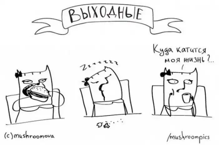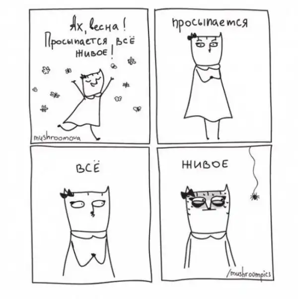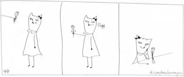 Художница Настя Машрумова из Минска рисует замечательные комиксы о Котечке, которая живет, вполне себе, человеческой жизнью. Вся прелесть ее работ не только в забавном персонаже, но и в ситуациях, которые, наверняка, знакомы каждому из нас.