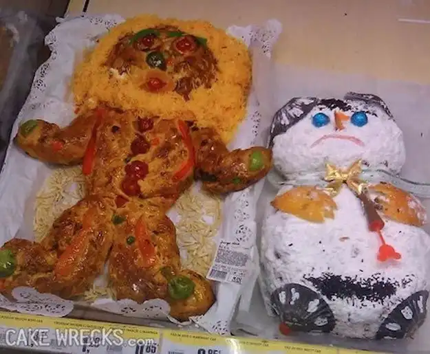 Кто бы мог подумать что у людей может быть настолько извращенная фантазия, которая смогла сподвигнуть их на создание этих адских рождественских тортов. Рождественские торты ломающие психику ждут вас далее. Уберите от экранов детей!