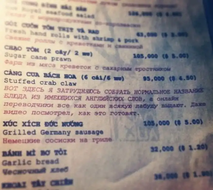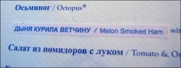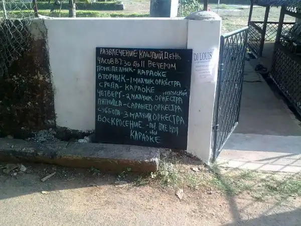 Туристические страны всегда стараются угодить своим клиентам и сделать адаптацию к месту отдыха как можно более мягкой. К примеру многие вывески, меню и афиши бережно дублируются на русском языке с помощью компьютерных переводчиков. Вот только дружба с этими переводчиком не всегда складывается легко и безболезненно.