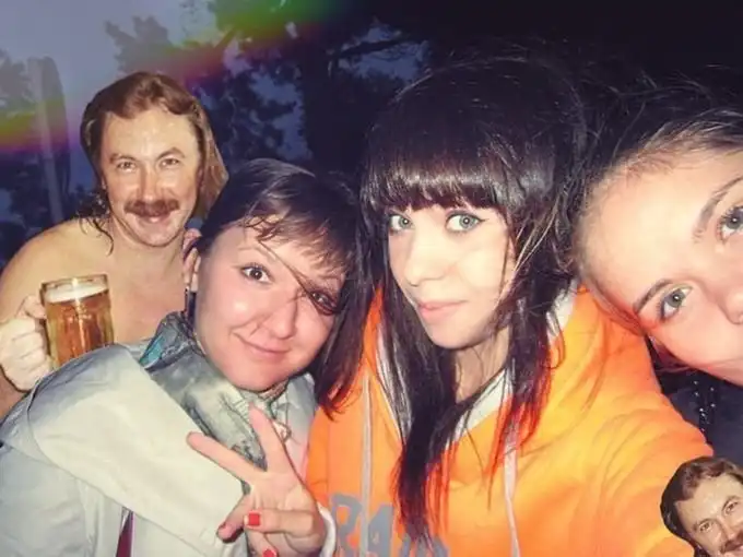 Начнем наверное с обычного фото, где запечатлен артист с кружкой пива: