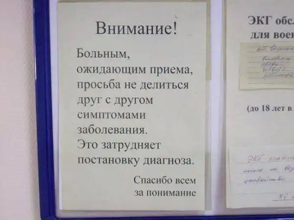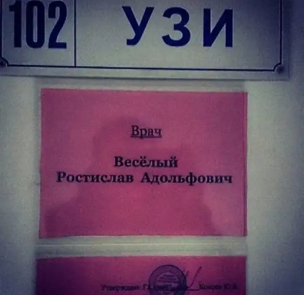 Медицина — это та область, в которой без юмора не обойтись. Потому что от всех этих диагнозов, больных, справок, анализов, медосмотров, «мне только спросить» и прочей суматохи, которой наполнены рабочие будни врачей, можно сойти с ума. Возможно, поэтому в поликлиниках и больницах так много веселых объявлений, а уж фамилии докторов — это отдельная песня.