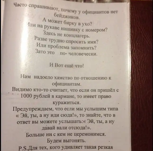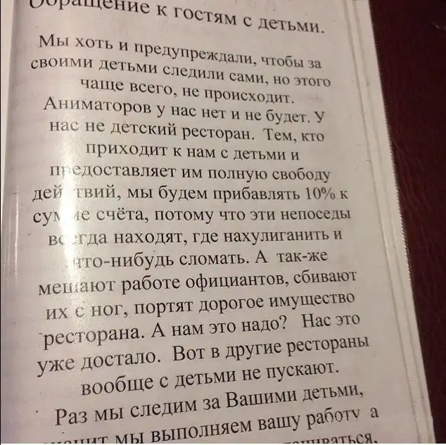 Вот такое оригинальное меню, где несколько страниц выделено жестким правилам поведения, предлагает своим клиентам один ресторан города Иваново.
