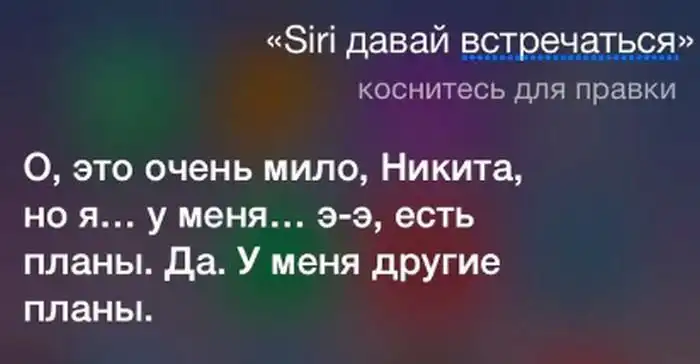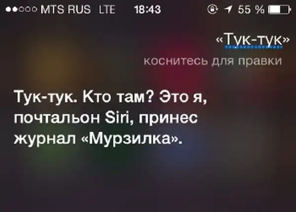 Сегодня вечером Apple выпустил очередное обновление мобильной ОС iOS. Версия 8.3 содержит долгожданный русскоязычный голосовой помощник Siri. Уже спустя несколько часов в сети появились скрины, проливающие свет на то, как происходит общение человека с мобильным телефоном.
