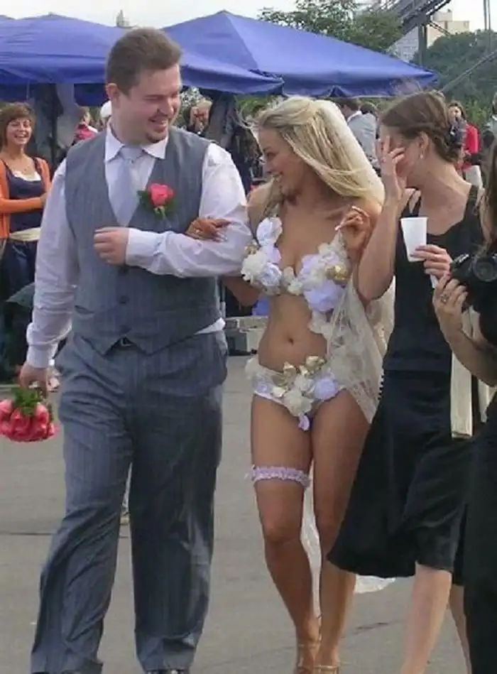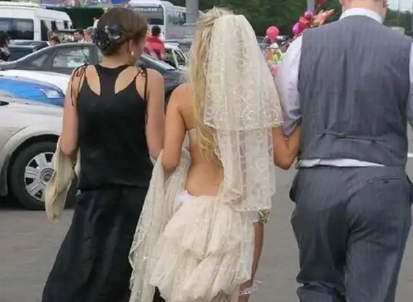 Для любой женщины, свадьба – это одно из самых важных и главных событий в её жизни. И поэтому, она подходит к подготовке к нему с особой тщательностью. Но видимо, у людей на этих фото были другие проблемы и им некогда было серьезно подойти к выбору свадебного платья.