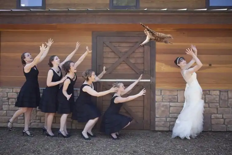 Уже много лет следуя традиции абсолютное большинство невест бросают свадебный букет, создатель странички на Tumblr под названием "Brides Throwing Cats" (Невесты бросают котов) считает, что пора эту традицию усовершенствовать.