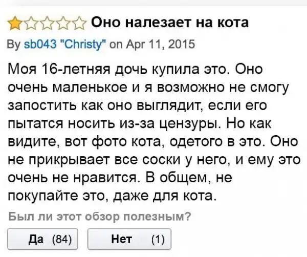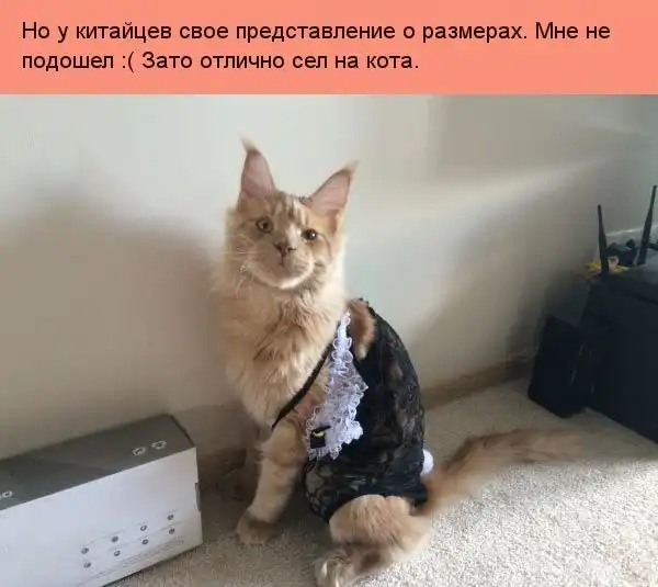 Заказывая вещи через интернет-магазины из Китая нужно поинтересоваться о соответствии размера, но даже в этом случае вы не получите гарантию того, что вещь придет нужного размера. Однако если вдруг покупка не подошла вам, то она может подойти... вашему коту.
