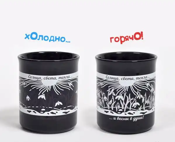 Подборка позитивных надписей и интересные кружки, которые меняются при нагревании.