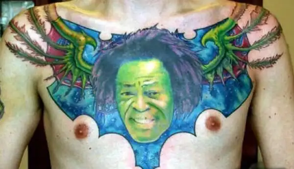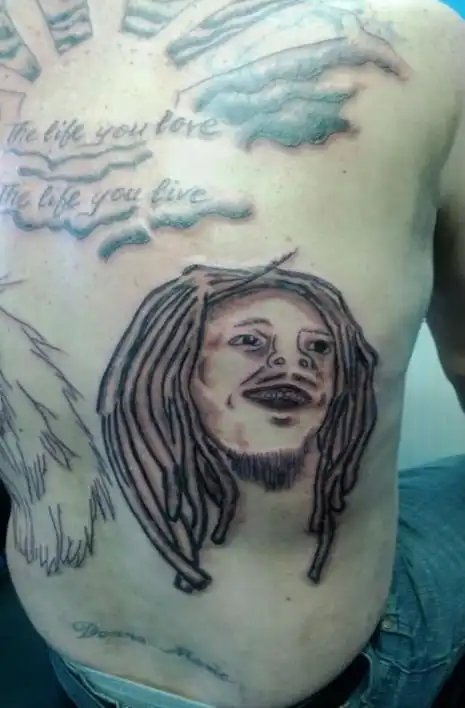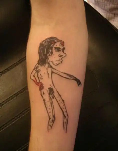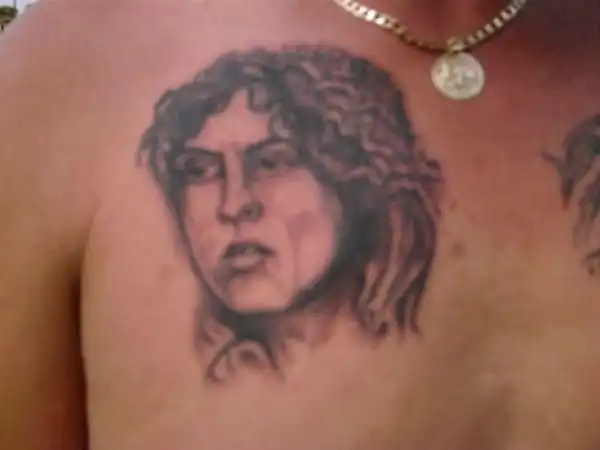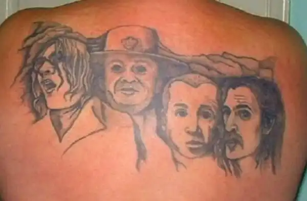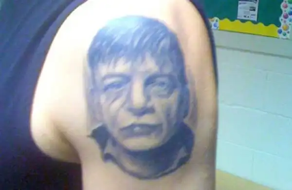 Мои музыкальные предпочтения меняются достаточно часто, поэтому я не рискнул бы сделать себе татуировку с портретом какой-нибудь рок-звезды. Но некоторые фанаты все-таки решаются и идут к криворуким татуировщикам. А те и рады стараться.