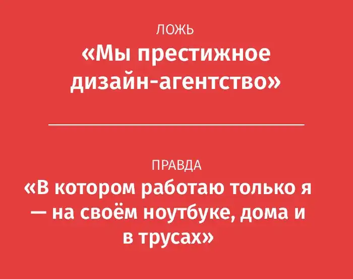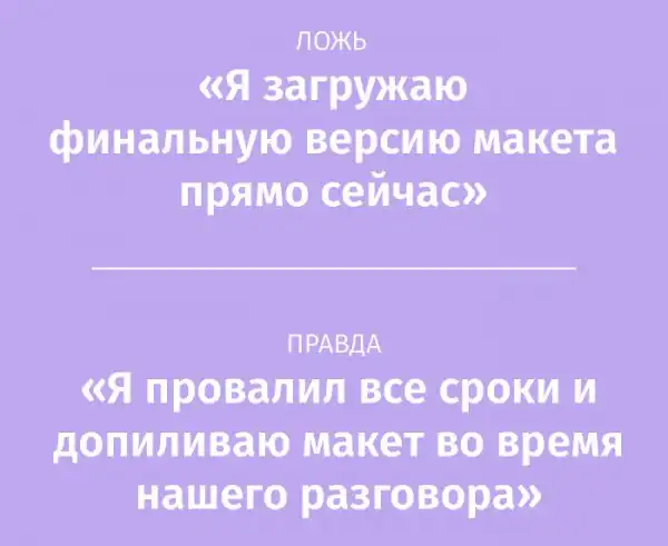 Представляю серию забавных плакатов, в которых показали типичную дизайнерскую ложь и скрывающуюся за ней правду.