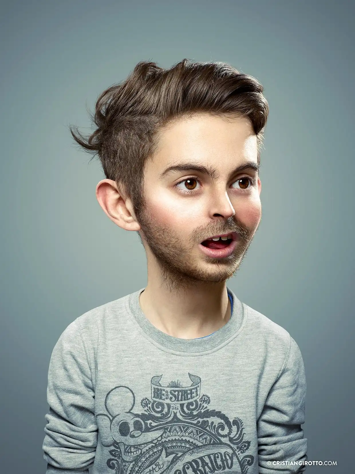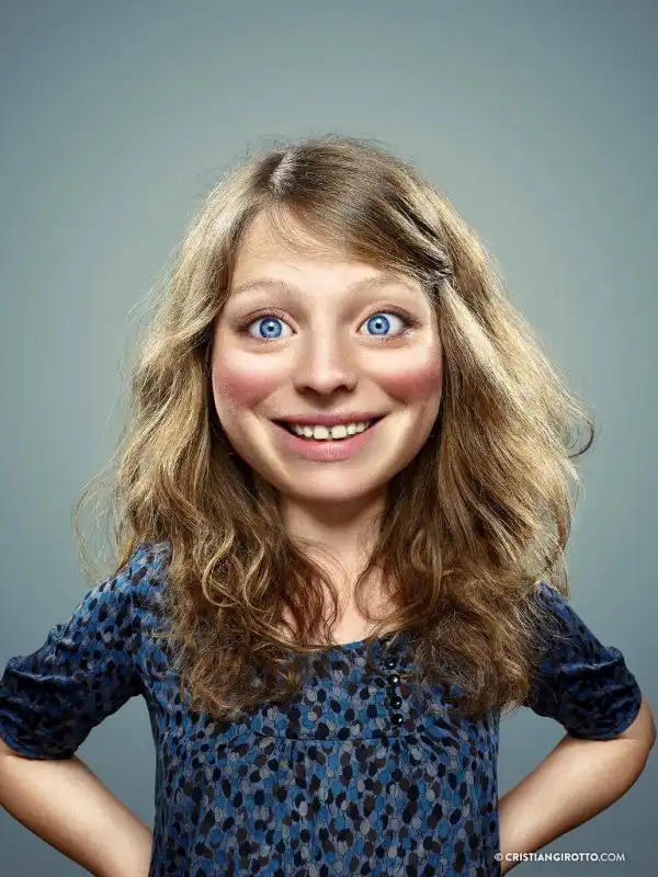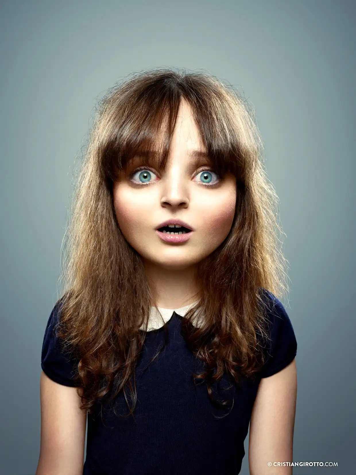 Фотографии взрослых людей он отредактировал так, как будто это детские портреты. Поработав над пропорциями, Кристиан попытался изменить внешность взрослых моделей, адаптировать их к детскому облику. И через некоторое время у автора уже была целая коллекция фотографий взрослых "детей".