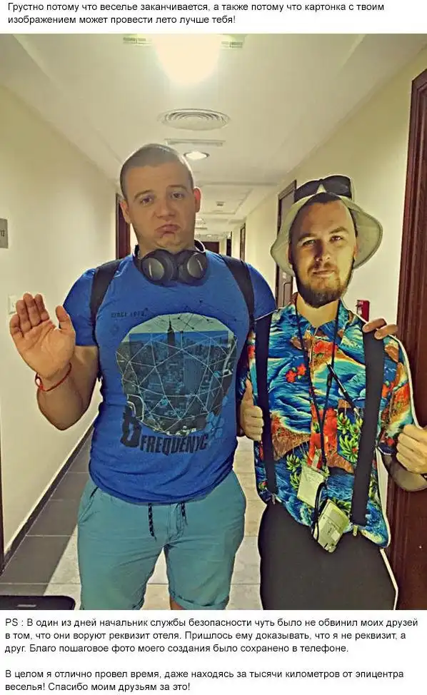 Ребята из Кишинева отправилась на отдых в Дубаи, прихватив с собой картонную фигуру друга Антона, у которого не получилось присоединиться к ним. Практически все свое время друзья проводили вместе с фигурой, после чего поделились историей этого незабываемого отдыха в социальных сетях.