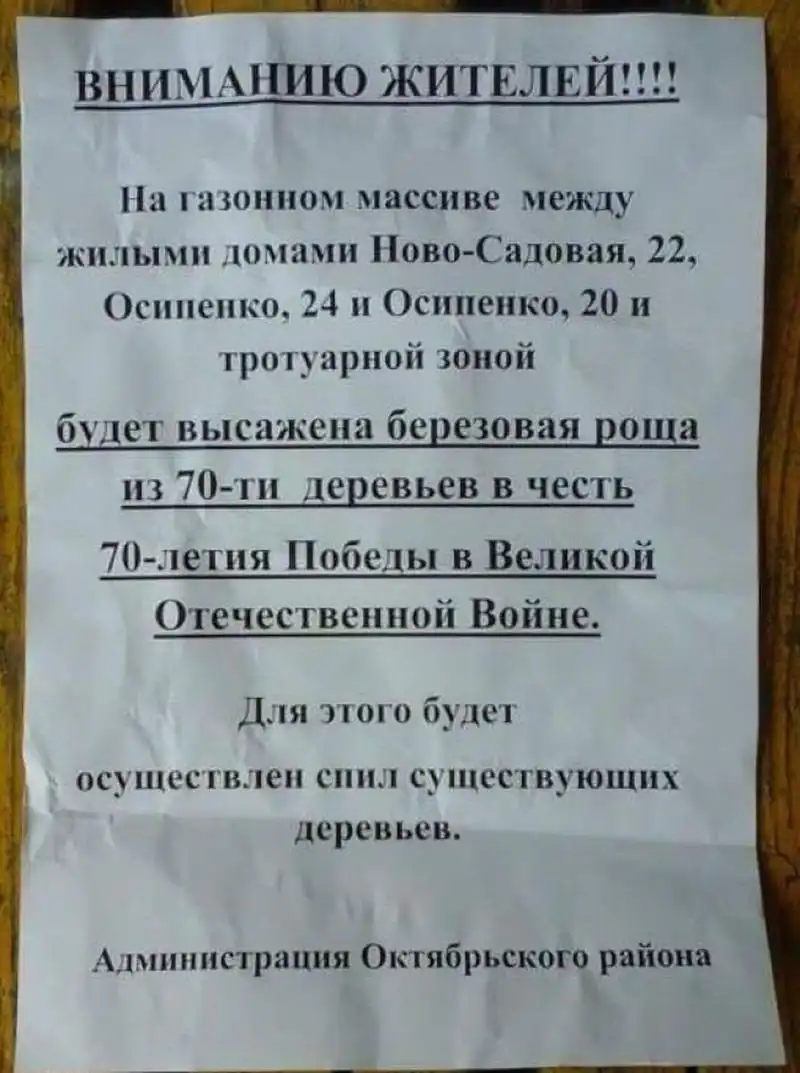 Видимо, не так гладко все проходит, если жителей не вводят в курс дела