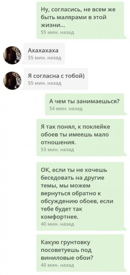 Скорее всего, начитавшись смешных переписок в интернете, парень решил попробовать пофлиртовать с девушкой, однако, легкая и непринужденная беседа у него как-то не завязалась.