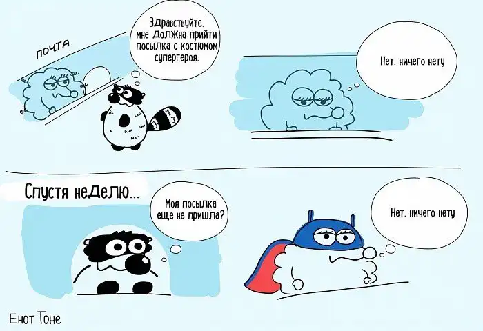 Теперь каждый человек может завести енота. Вымышленного! Художник из Петербурга публикует в своих социальных сетях комикс о Еноте Тоне. Настоящий вымышленный енот даст тебе совет на любой случай и подарит правильный заряд позитива и жизнелюбия. Главный посыл этого комикса - будь проще и веселей!