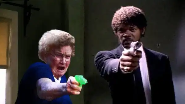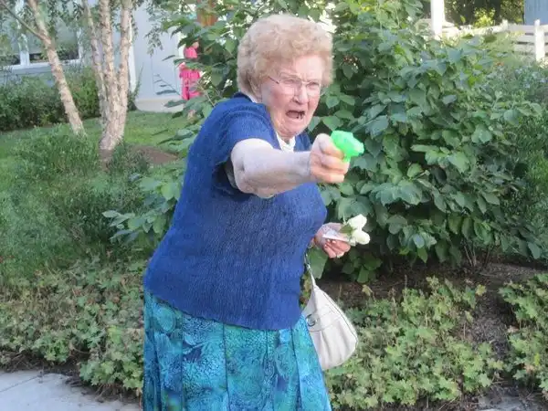 Пользователи сети наткнулись на фотографию бабушки с водяным пистолетом. Чем-то она им сильно приглянулась и это вылилось в подборку фотожаб.