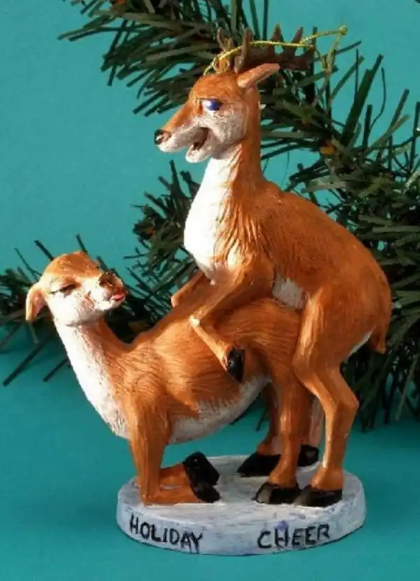 Подготовка к новому году занятие ответственное: нужно достать с антресолей ёлочные игрушки и мишуру, развесить гирлянды и купить красавицу-ёлку. Но для некоторых даже эти простые действия являются невыполнимой задачей, и они умудряются всё испортить. Хотя помимо криворуких неумёх хватает и тех, кто намеренно украшает свой дом скульптурами совокупляющихся оленей и придаёт гирляндам очертания мужских гениталий.
