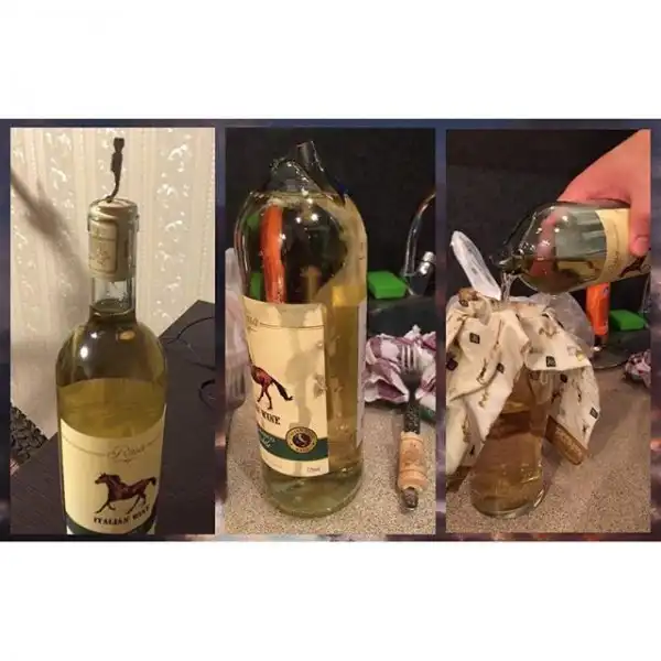 Сначала сломали штопор, потом открывали вино дрелью, а потом процеживали его через носовой платок