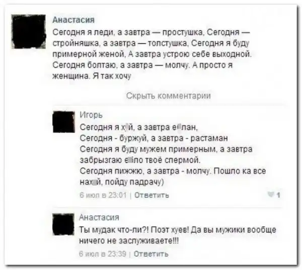 комментарии из социальных сетей.