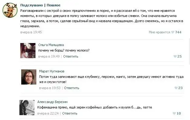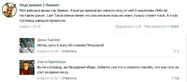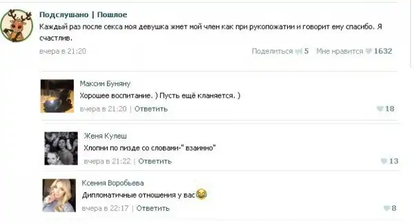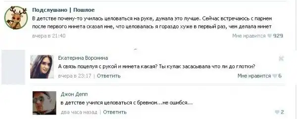 Пошлые посты из соцсетей с забавными комментариями к ним.