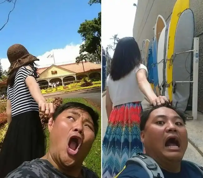 Наверняка вы неоднократно встречали в сети фотографии, сделанные парнем, которого ведет за руку его подруга. Данный тренд получил название Follow Me и стал весьма популярным. Далее предлагаем взглянуть на пародийные снимки, которые были сделаны находчивыми пользователями сети.
