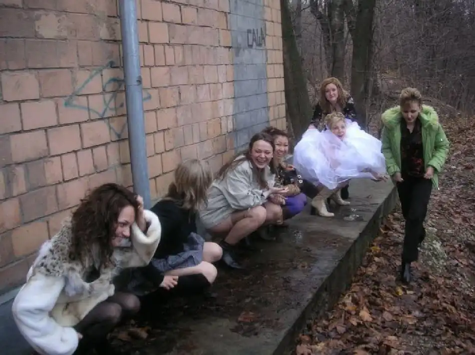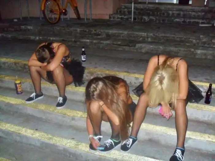 Только ближняя девушка задумалась: как хорошо, что у меня есть такая компания!